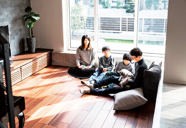 見晴らしの良い高臺にご夫妻とお子さま二人の4人で暮らすFさまご家族は、土地探しから住まいづくりを始め、いつでもゲストを招ける、〝すっきりと整った家〞をコンセプトに計畫されました。