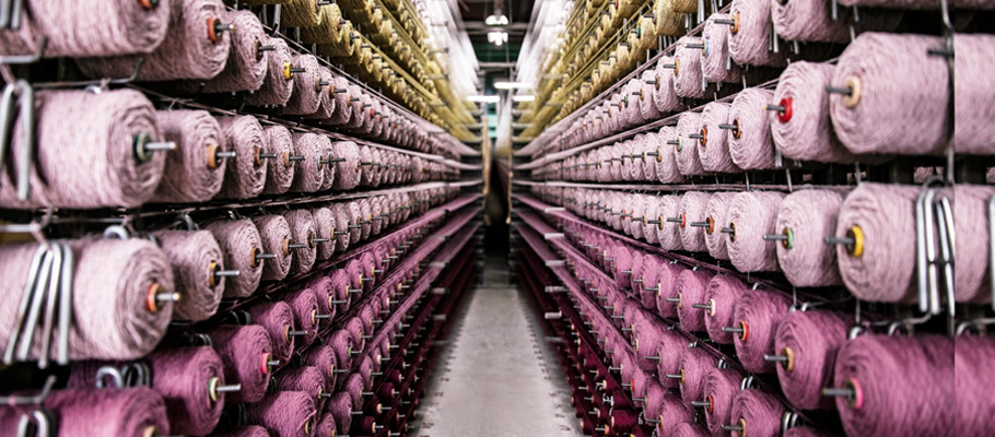 びっしり並んだ経糸の間をシャトルが飛び、緯糸を織り込んでいく。腕のいい織工の操る機械は音も靜かだそう