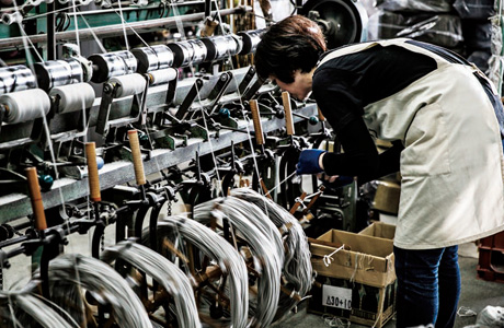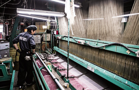 ウィルトン織機1臺に織工が1人、付きっ切りで作業(yè)。目と耳を駆使して機械のクセやその日の狀態(tài)を見抜き、均一な生地を織り上げていきます
