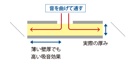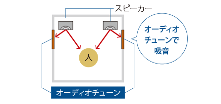 オーディオチューンは壁に二重の吸音層を設(shè)け、音を曲げて通すことで、薄い壁厚でも高い吸音力を発揮します。また、オーディオチューンを最適な場(chǎng)所に配置することで、スピーカーからの響きが直接耳に屆き、クリアな音を楽しめます。