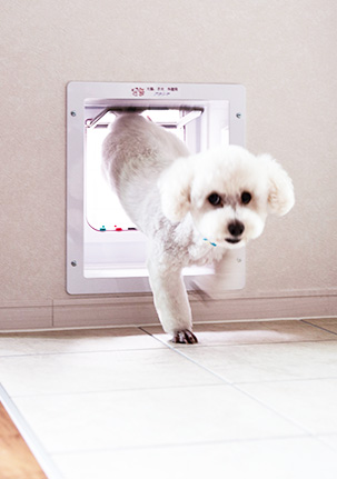 自由に庭に出られるペット用ドアも設置