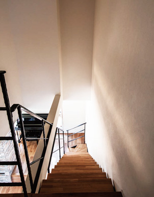 階段ホールの壁には自然の光が反射。季節や時間で異なる表情を楽しめます