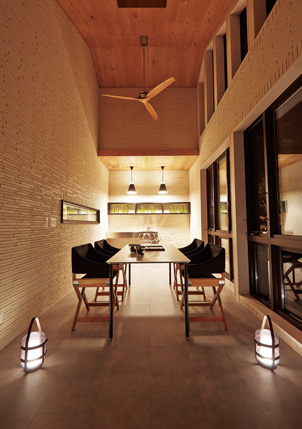 バーコーナーのあるサンルーム。晝も夜も、室內とは少し違った雰囲気を楽しめます
