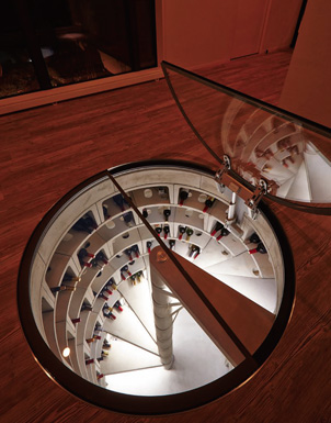 ワイン好きのご夫妻のため、玄関ホールの地下に設けたスパイラルワインセラー