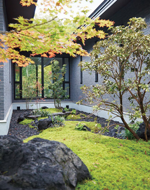 廊下からのぞむ中庭は、和の雰囲気を感じさせるアレンジ