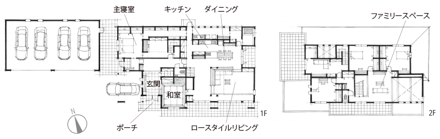 約327坪の広い敷地に、車(chē)4、5臺(tái)分のガレージやドッグランを備えたMさま邸。ご夫妻と7歳、4歳、3歳の元?dú)荬首婴嗓膺_(dá)、5匹の犬が仲むつまじく暮らすご家族です。