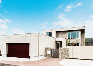 ボックスを重ねたシンプルなフォルムにアクセントタイルを用いた外観は、堂々とした風格をたたえつつ、上質な邸宅感を醸し出します。