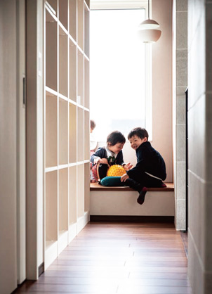 2階廊下奧の「窓際ベンチ」は子ども達の隠れ家