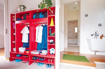 用具の収納や手入れ、洗い物ができるスペースを玄関に確保。室內に汚れやニオイを持ち込ませません。