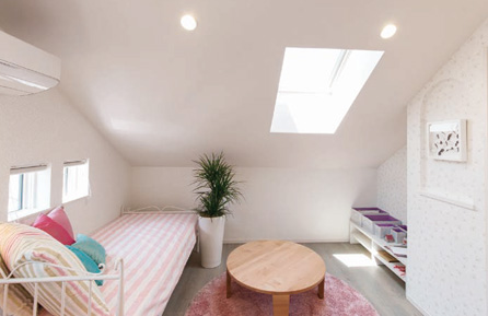 子ども達が憧れるような秘密基地感を演出する、勾配天井が魅力的です。