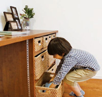 LDまわりには雑誌、美容グッズ、勉強道具など、家族がそれぞれ使うものが散らかりがち。各自がボックスに収納すれば、きちんと片づきます。