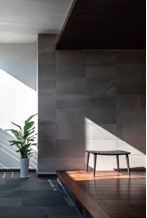 塀と建物の間には、靜けさやプライバシー保護のために緩衝エリアとしてのテラスを広めに設置