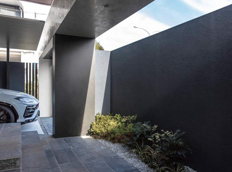 右:建物とハーフゲート、門塀をモノトーンでコーディネート